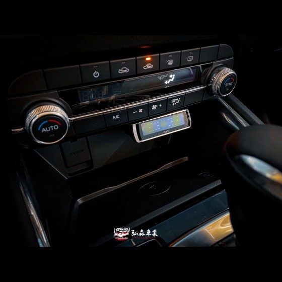 並以無線電訊號傳輸資訊予車內的接收顯示器,並將胎壓與胎溫資訊以及PM2.5&汽車電瓶/發電機電壓顯示於接收顯示器上,